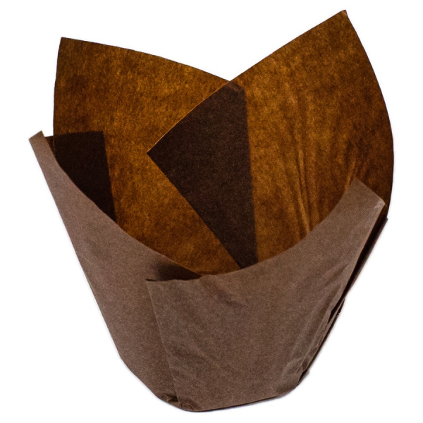 Одноразовая продукция: Форма бумажная для выпечки маффина d-50 h-88 "тюльпан" спираль коричневая /пач.=200 шт.