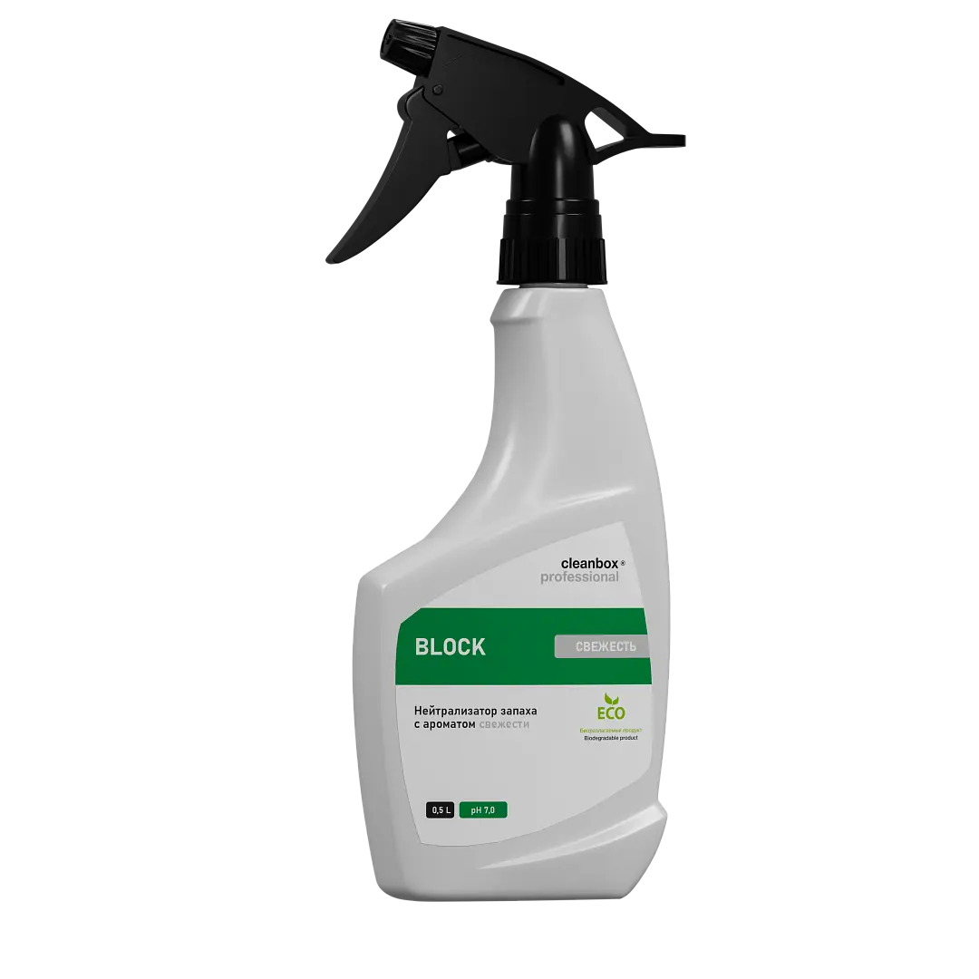 Средство для уничтожения неприятных запахов Vortex CleanBox BLOCK 500 мл нейтрализует неприятные запахи (животных, табака, испорченных продуктов, сырости, масел) в воздухе, на тканевых, текстильных и твёрдых поверхностях. В отличие от освежителей воздуха, связывает и удаляет запахи, а не маскирует их. Придаёт воздуху и обработанным поверхностям свежий, приятный, ненавязчивый аромат. Блокирует появление повторных запахов на период 7-14 дней.