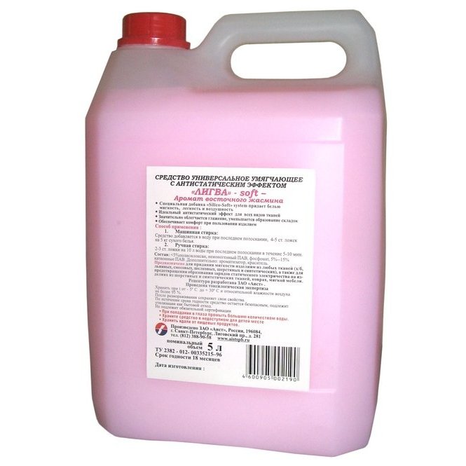 /шт.Кондиционер для белья Лигва soft.Состав: <5% полисилоксан, неионогенные ПАВ, фосфонат; 5%-15% катионные ПАВ.Дополнительно: ароматизатор, краситель.Срок годности: 18 мес.ТУ 2382-012-00335215-96
