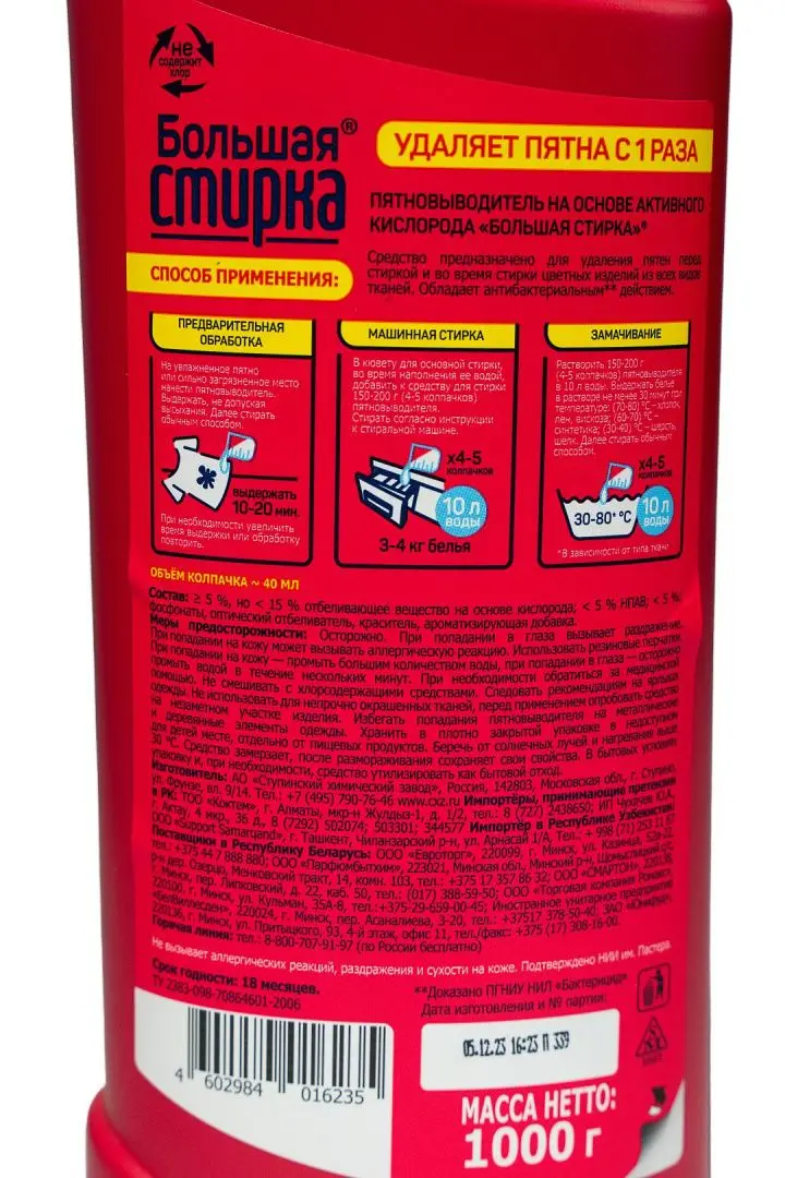 Отбеливатели(пятновыводители): БОЛЬШАЯ СТИРКА 1л Пятнвыводитель NEW жидкий на основе активного кислорода