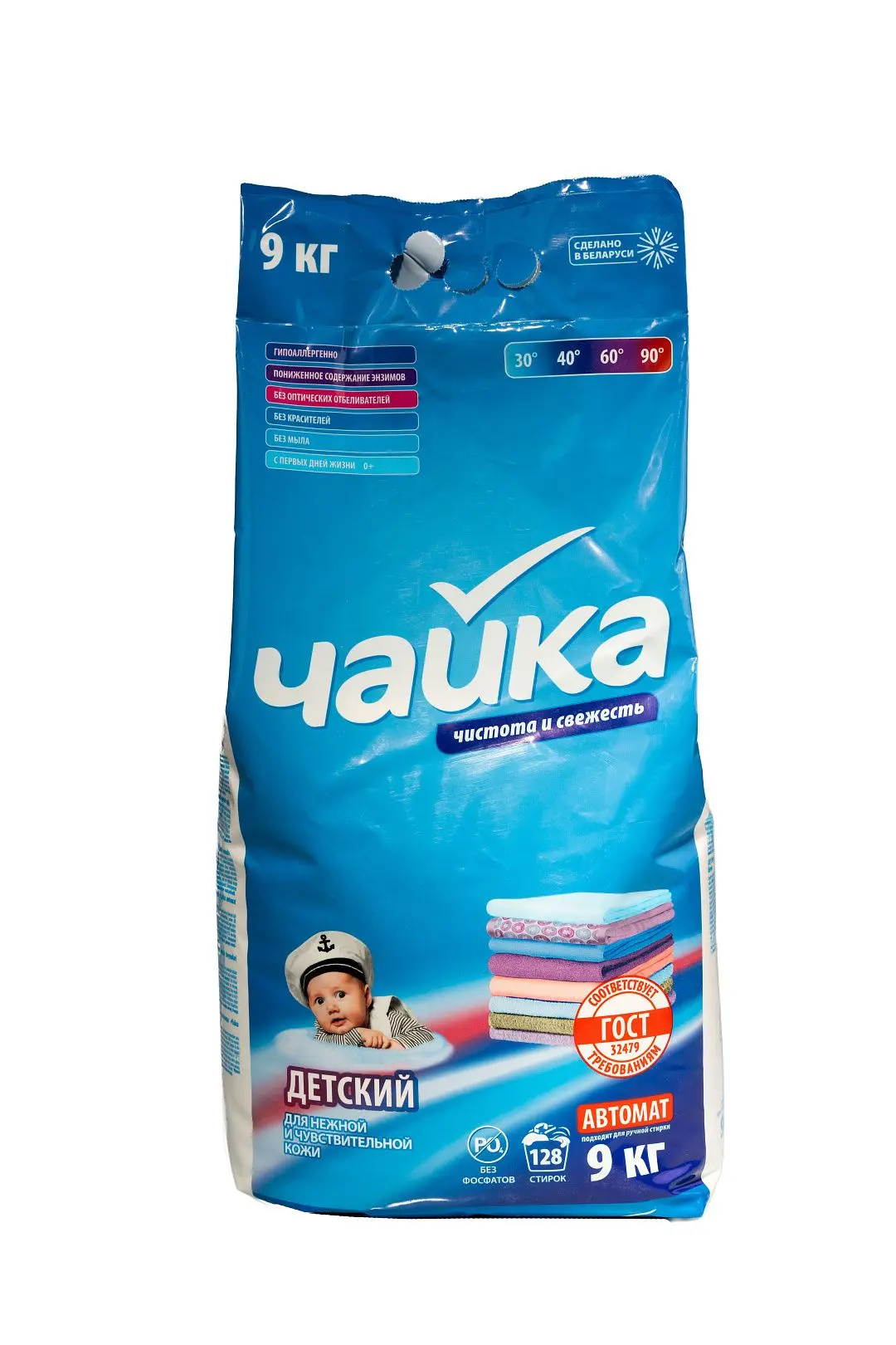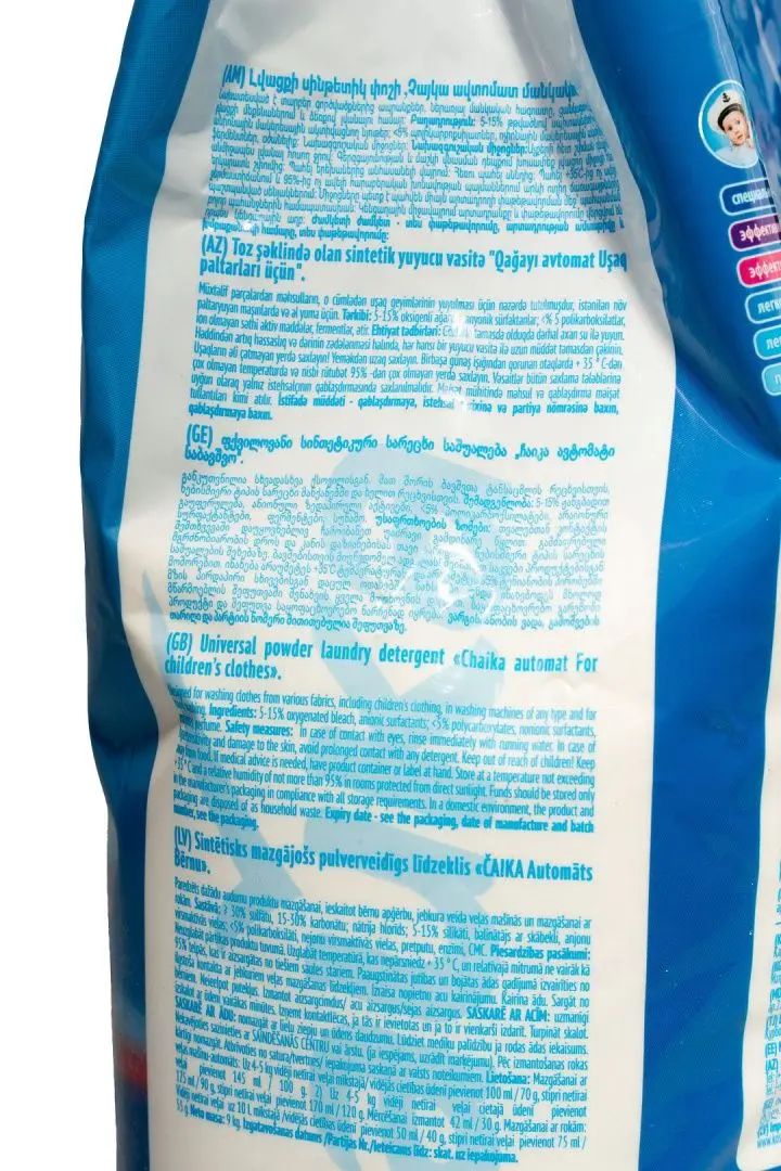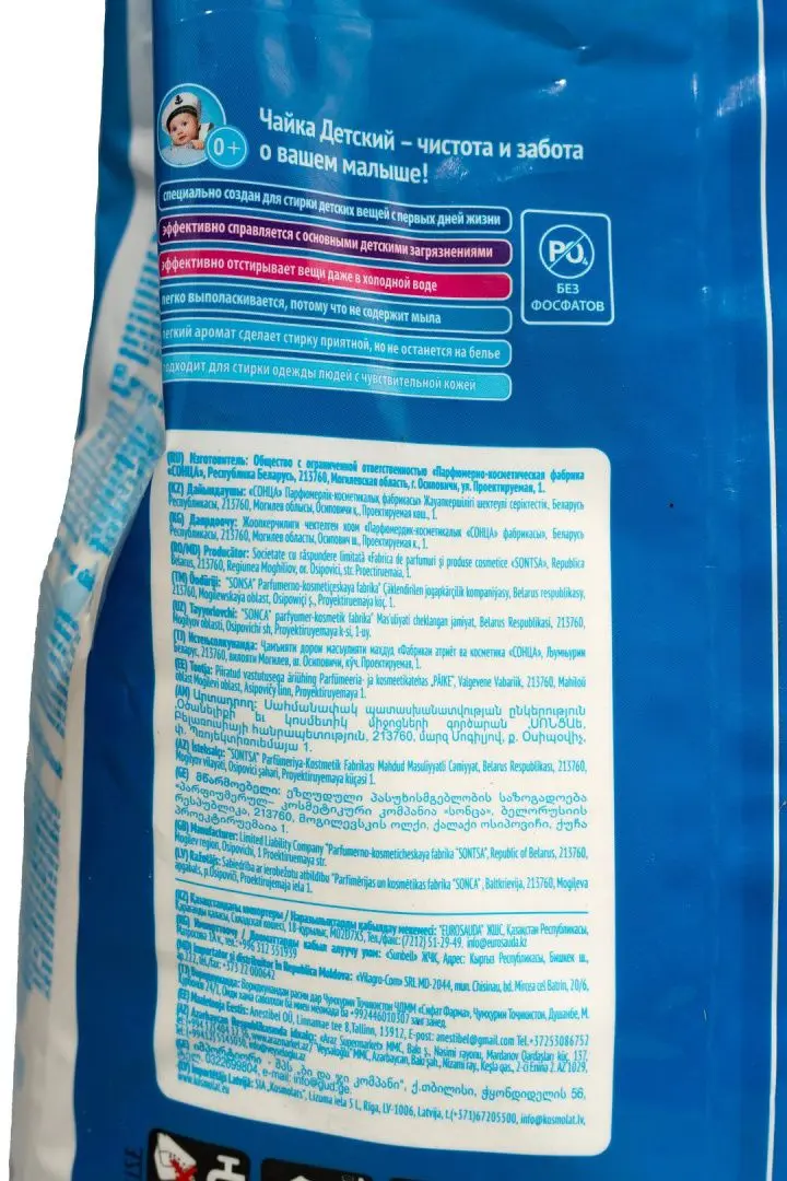 Назначение: синтетическое моющее средство Чайка порошкообразное для использования в стиральных машинах любого типа.Специально разработан для безопасной стирки детских вещей и белья, а также для людей с чувствительной кожей. В состав входит гипоаллергенная отдушка. Исключены такие компоненты, как оптические отбеливатели, мыло и красители.