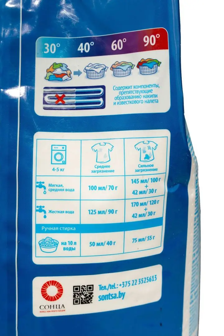 Средний расход 150 г порошка на 4-5 кг белья.