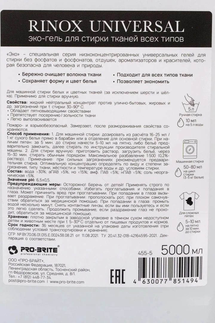 Pro-Brite: Ринокс Эко-гель 5л для стирки