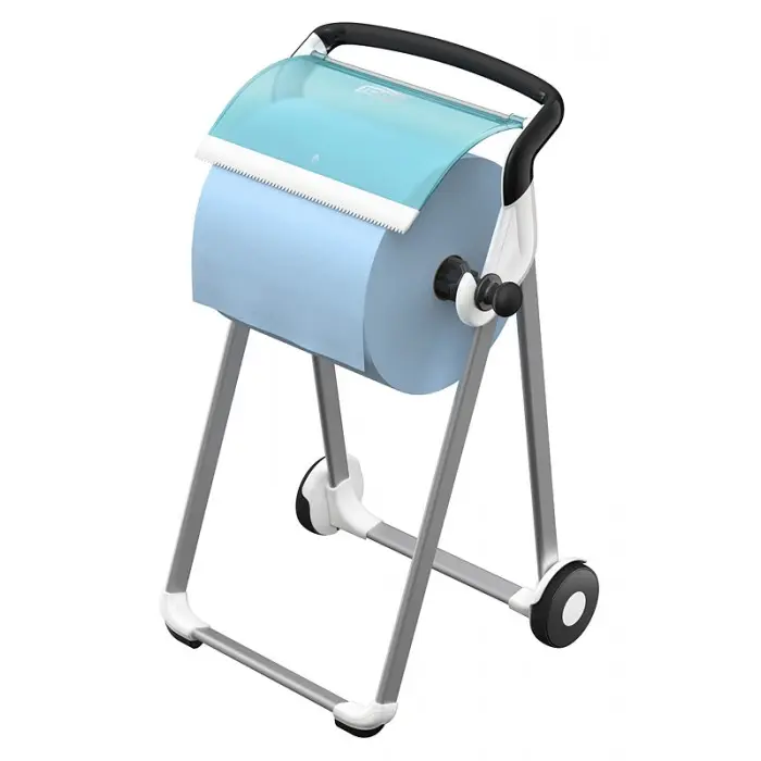 Напольный диспенсер для материалов в рулоне (как бумажных, так и нетканных) для рабочих мест с большим расходом протирочного сырья, и необходимостью смены положения диспенсера. Надежный корпус из пластика и металла. Продуманная эргономика диспенсера делает замену и передвижение диспенсера легкой и беззаботной. Благодаря прорезиненой опоре не оставляет следов, зубцы из стекловолокна - легко отрывать материал. Подходят рулоны шириной до 435 мм. и втулкой 70-77 мм.