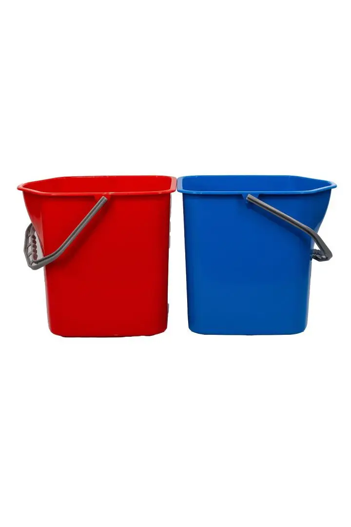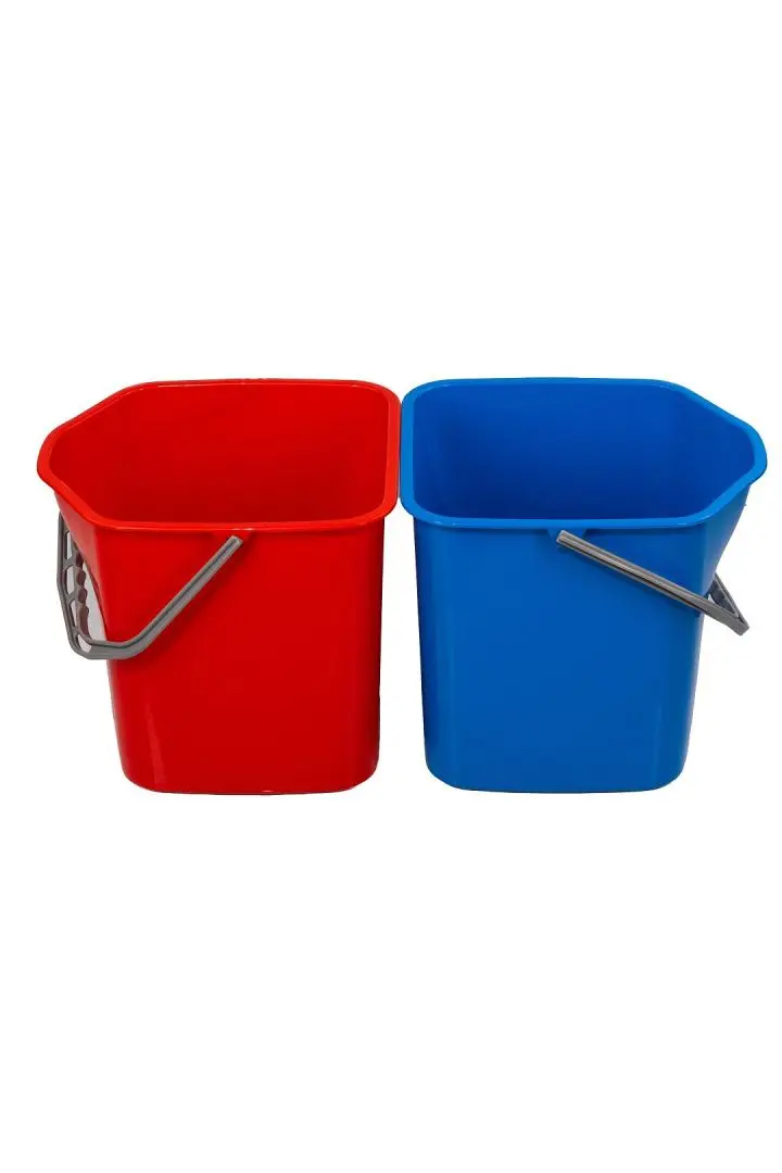 Тележка оснащена двумя пластиковыми вёдрами по 20 литров каждое. Это позволяет иметь под рукой достаточное количество чистой и грязной воды.